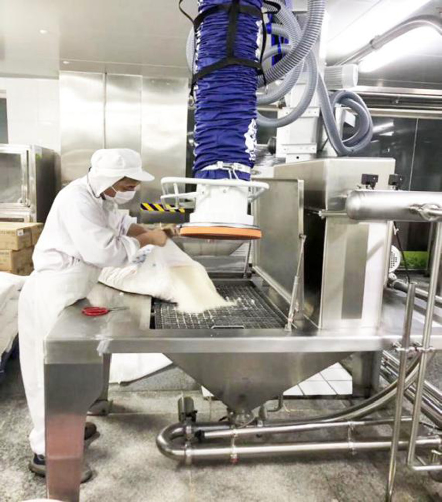 The vacuum system can realize automatic addition of powder in a controllable and reliable way. It automatically sucks the ingredients into the sugar tank, eliminating the need for operators to undertake this heavy work.
